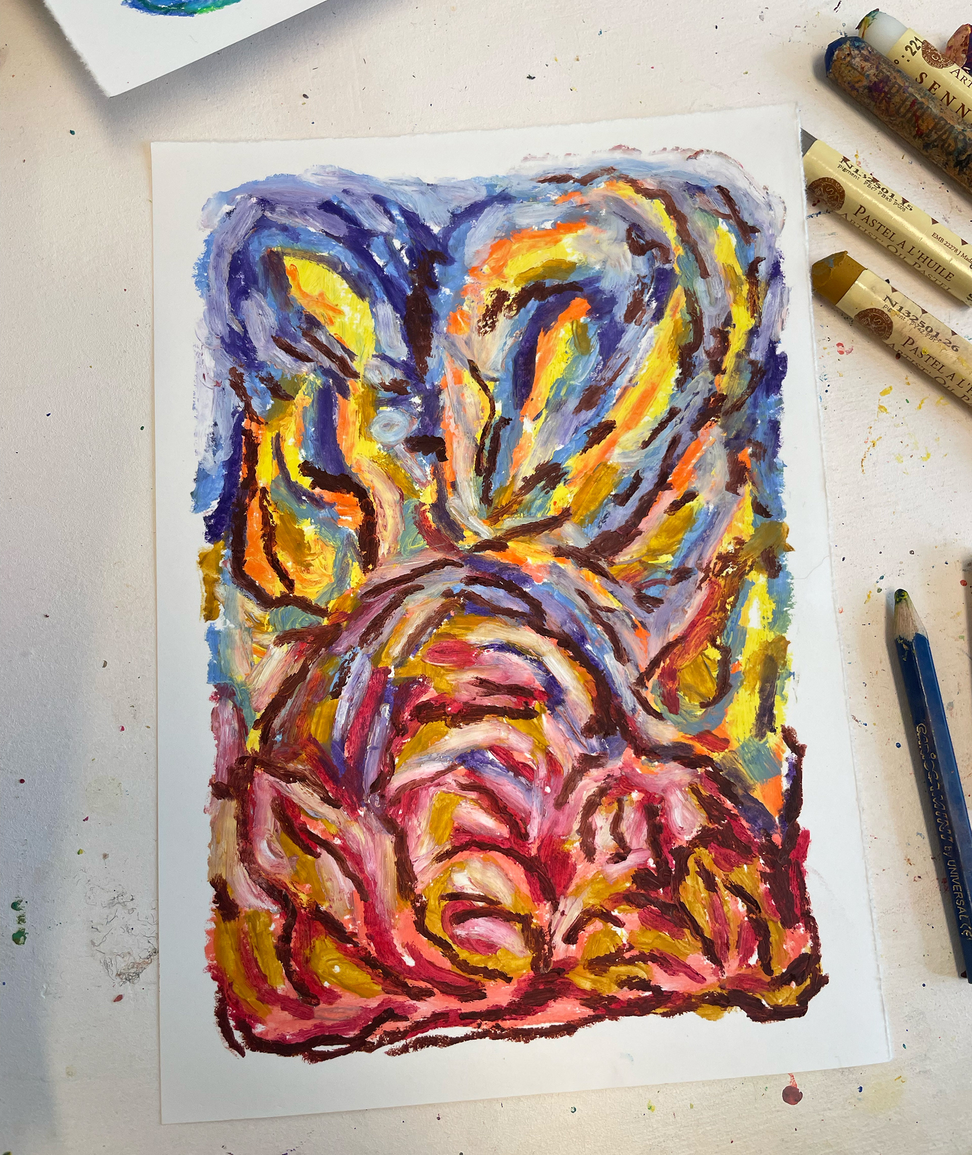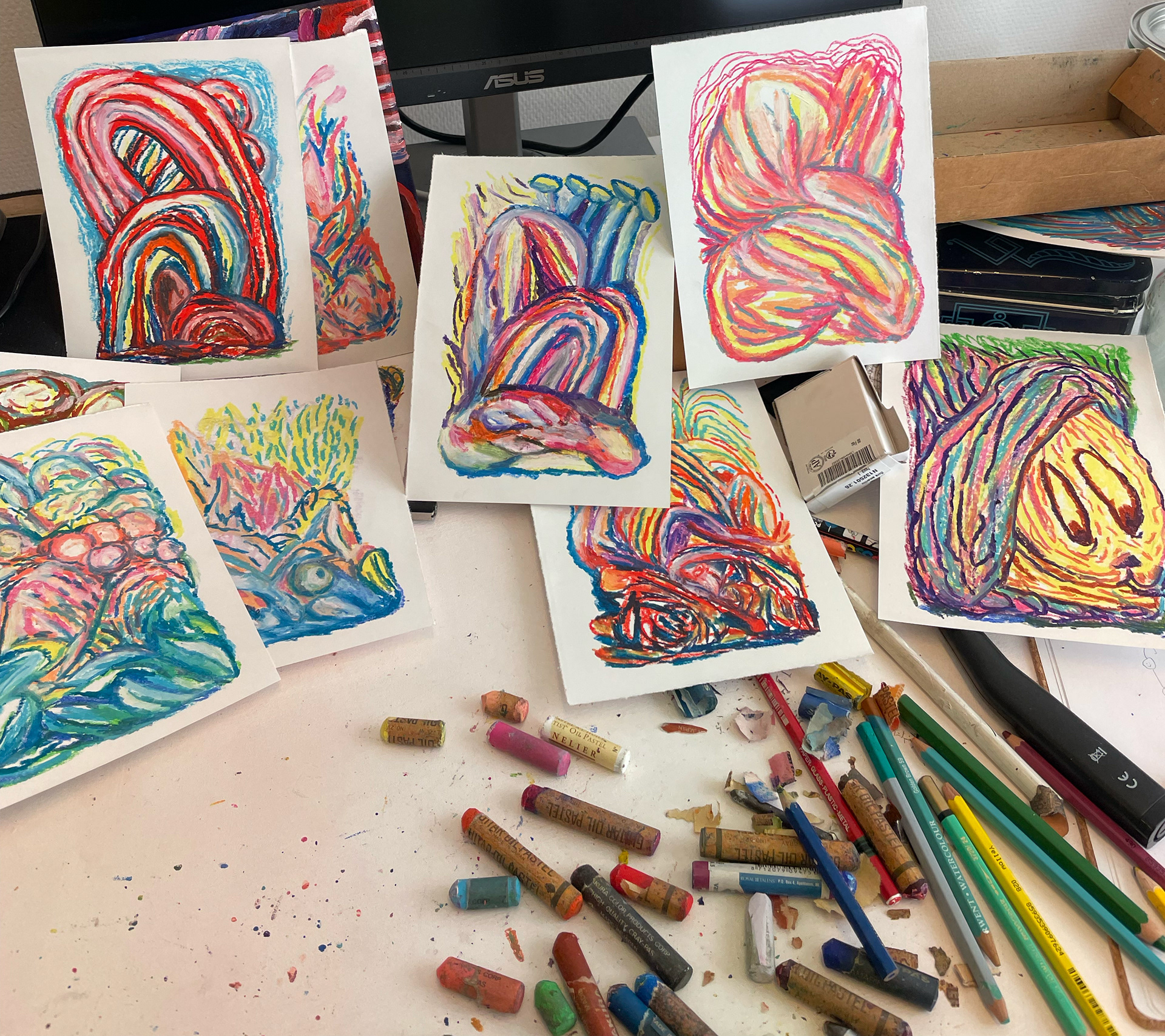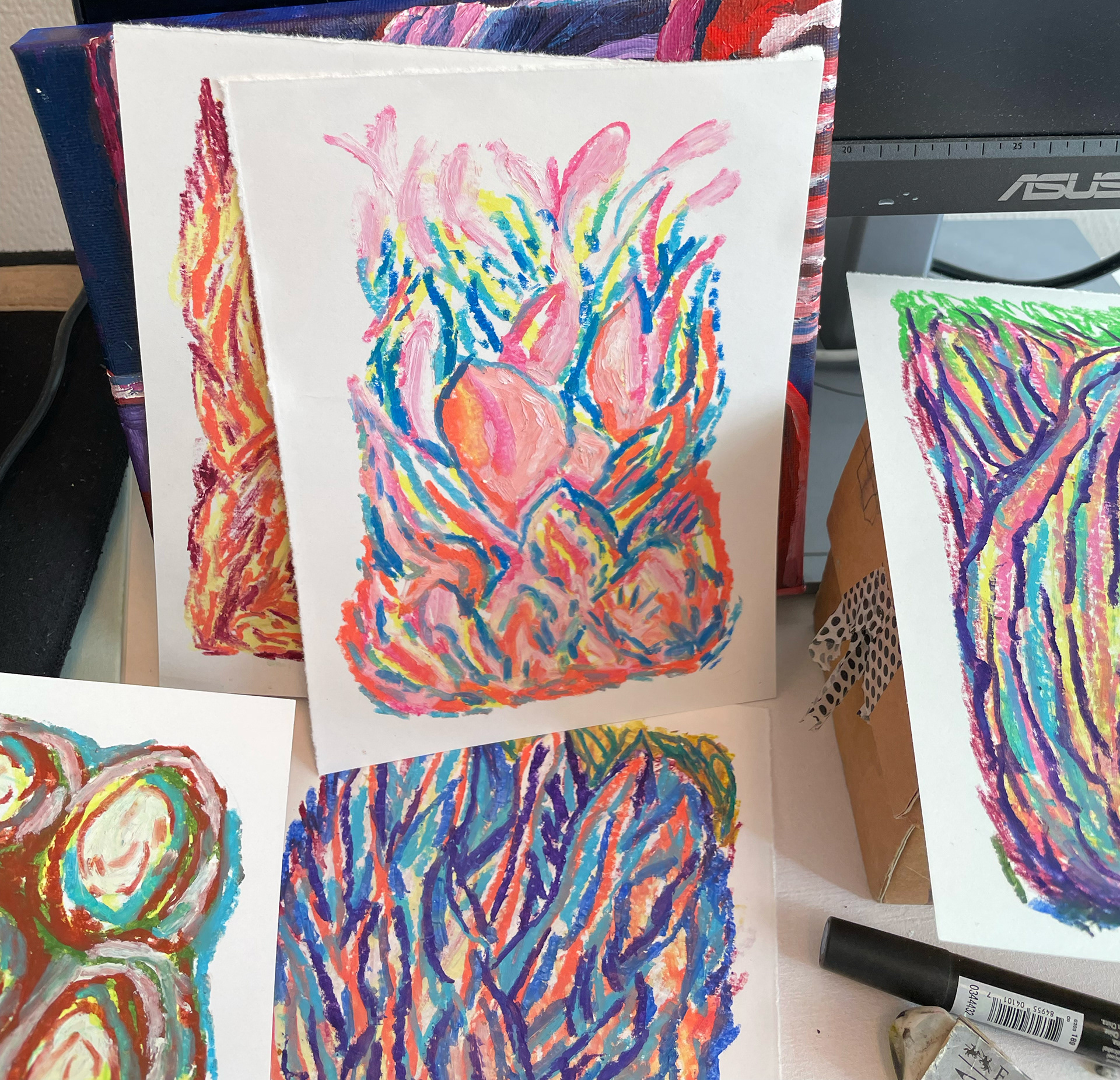 Projekt där jag skapade 100 st oljepasteller i A5 format. Varje pastell blev som ett dammkorn som fick dansa i en solstråle för en kort stund.