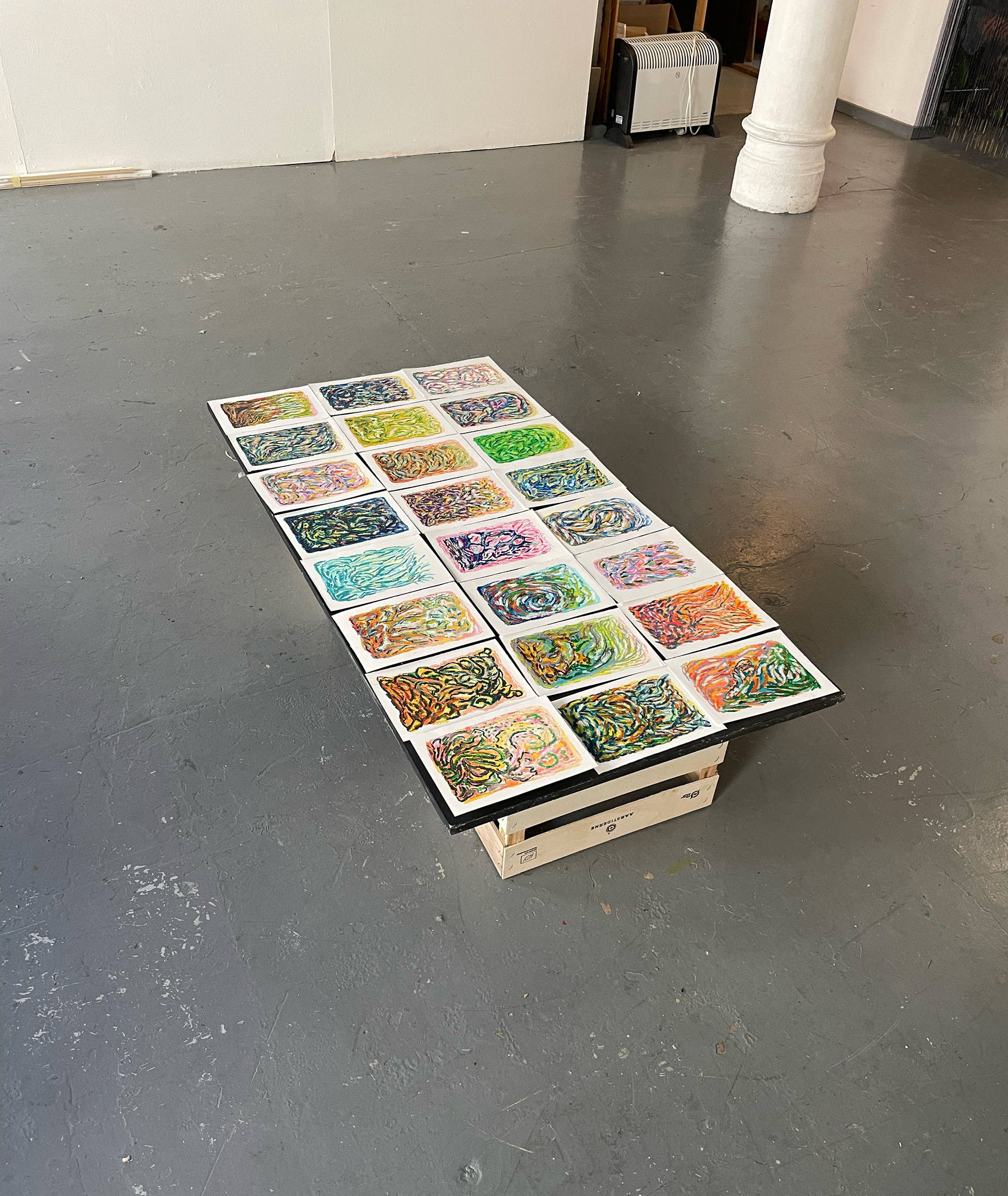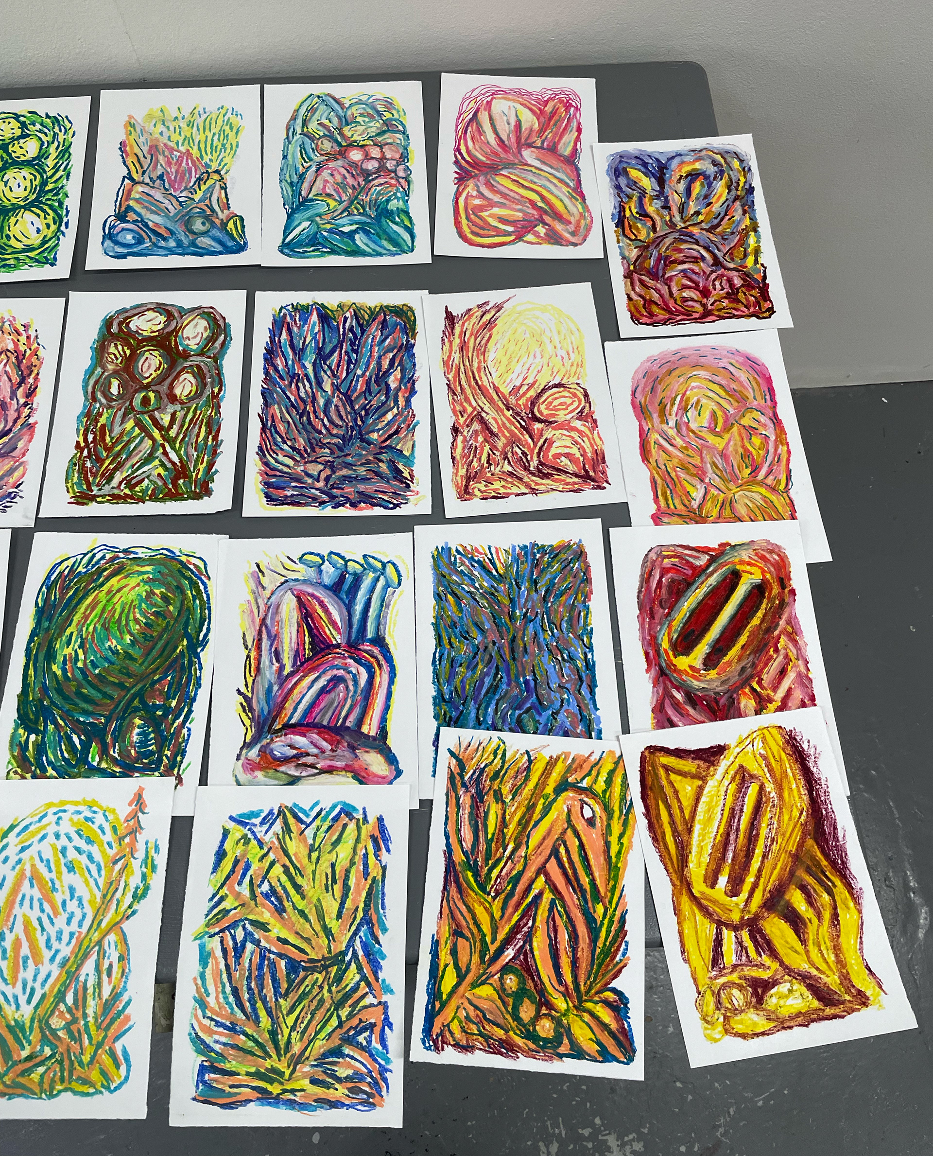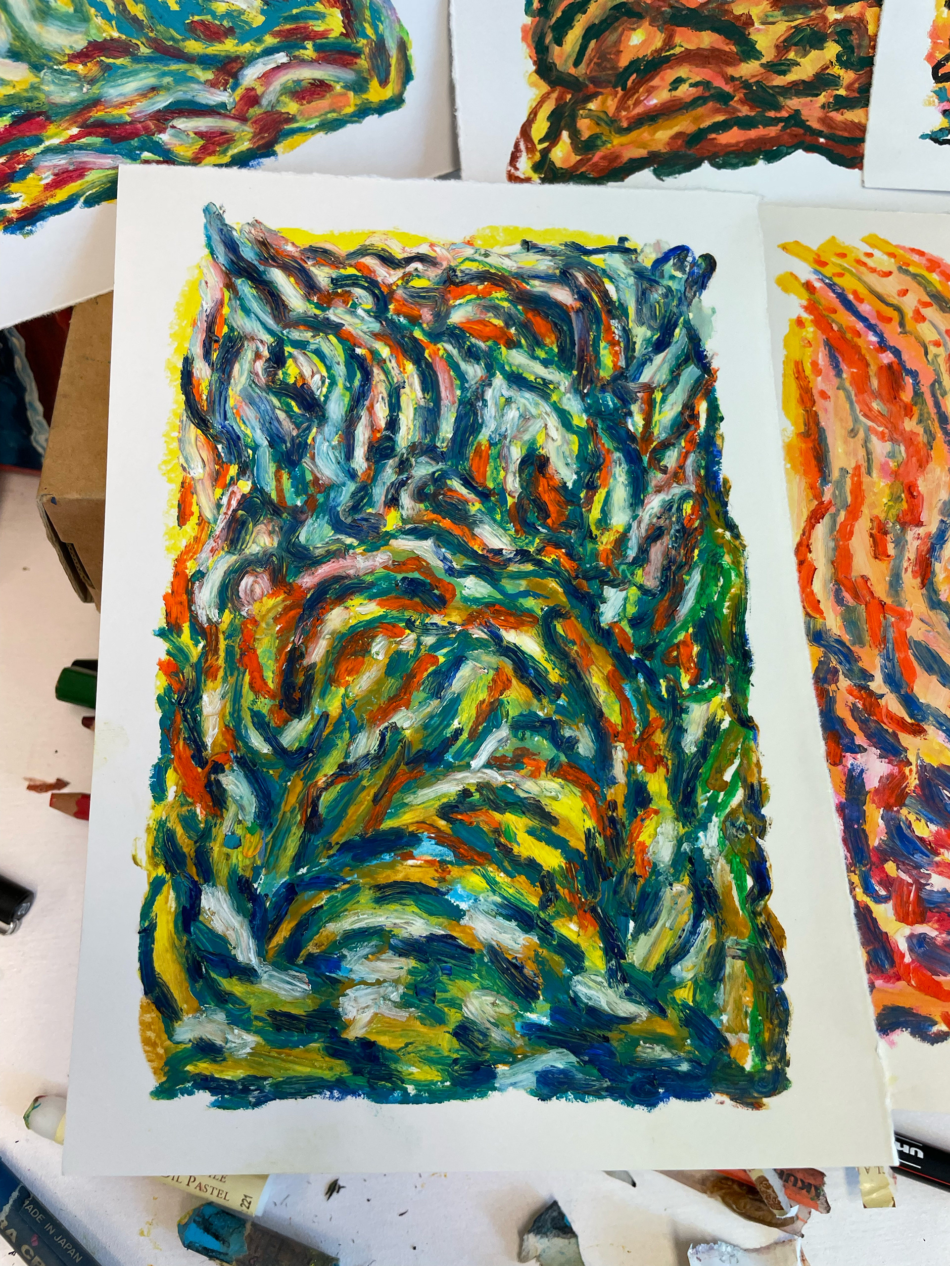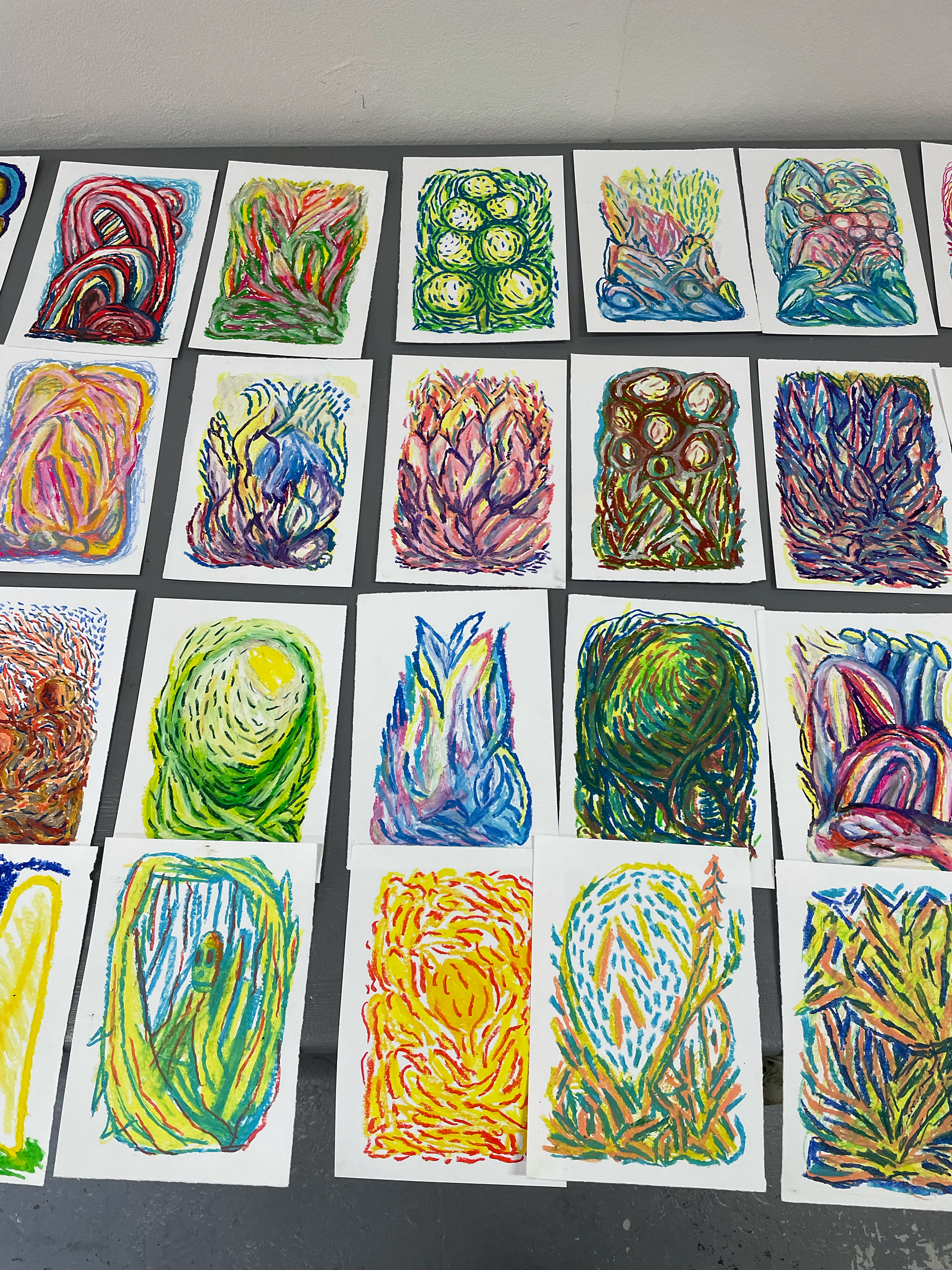 Projekt där jag skapade 100 st oljepasteller i A5 format. Varje pastell blev som ett dammkorn som fick dansa i en solstråle för en kort stund.